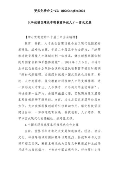 【七哥公文】2025年:以科技强国建设牵引教育科技人才一体化发展+更多免费公文+VX:QiGeGongWen2024+更多免费公文+VX:QiGeGongWen2024