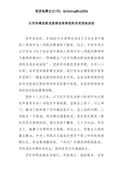 【七哥公文】2025年:以作风建设新成效推动保持党的先进性纯洁性+更多免费公文+VX:QiGeGongWen2024+更多免费公文+VX:QiGeGongWen2024