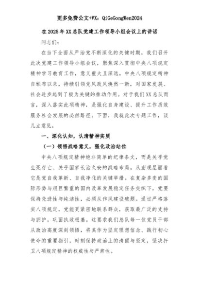 【七哥公文】2025年:在2025年XX总队党建工作领导小组会议上的讲话+更多免费公文+VX:QiGeGongWen2024+更多免费公文+VX:QiGeGongWen2024
