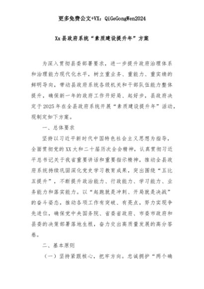 【七哥公文】2025年:Xx县政府系统“素质建设提升年”方案+更多免费公文+VX:QiGeGongWen2024+更多免费公文+VX:QiGeGongWen2024