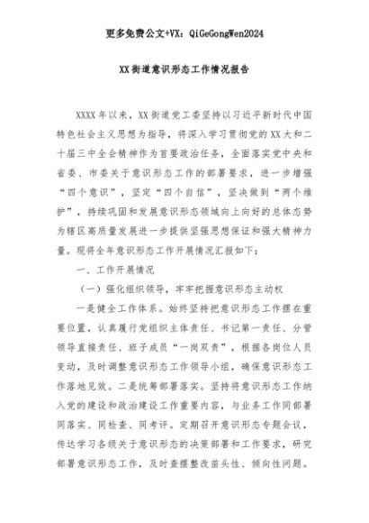 【七哥公文】2025年:XX街道意识形态工作情况报告+更多免费公文+VX:QiGeGongWen2024+更多免费公文+VX:QiGeGongWen2024