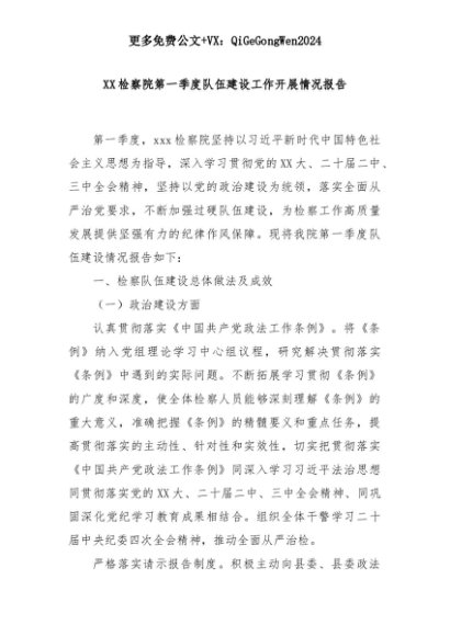 【七哥公文】2025年:XX检察院第一季度队伍建设工作开展情况报告+更多免费公文+VX:QiGeGongWen2024+更多免费公文+VX:QiGeGongWen2024