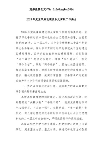 【七哥公文】2025年:2025年度党风廉政建设和反腐败工作要点+更多免费公文+VX:QiGeGongWen2024+更多免费公文+VX:QiGeGongWen2024