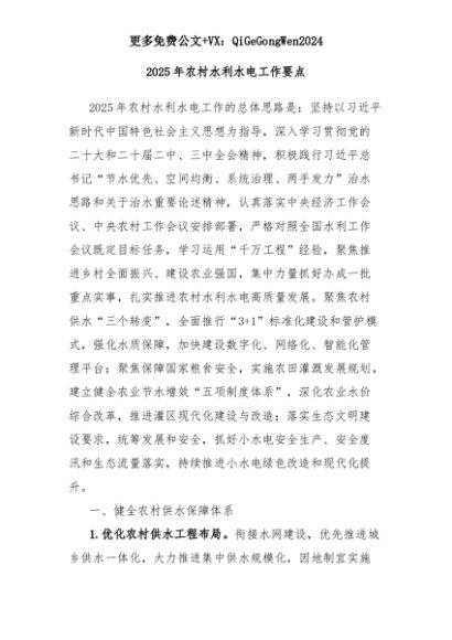 【七哥公文】2025年:2025年农村水利水电工作要点+更多免费公文+VX:QiGeGongWen2024+更多免费公文+VX:QiGeGongWen2024