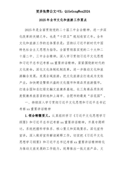 【七哥公文】2025年:2025年全市文化和旅游工作要点+更多免费公文+VX:QiGeGongWen2024+更多免费公文+VX:QiGeGongWen2024
