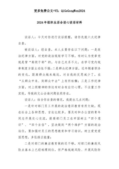 【七哥公文】2025年:2024年组织生活会谈心谈话材料+更多免费公文+VX:QiGeGongWen2024+更多免费公文+VX:QiGeGongWen2024
