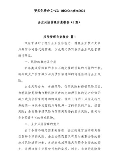 【七哥公文】2025年:(9篇)企业风险管理自查报告+更多免费公文+VX:QiGeGongWen2024+更多免费公文+VX:QiGeGongWen2024