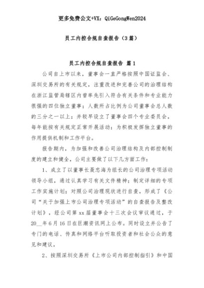 【七哥公文】2025年:(3篇)员工内控合规自查报告+更多免费公文+VX:QiGeGongWen2024+更多免费公文+VX:QiGeGongWen2024