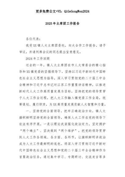 【七哥公文】2025年:2025年主席团工作报告+更多免费公文+VX:QiGeGongWen2024+更多免费公文+VX:QiGeGongWen2024