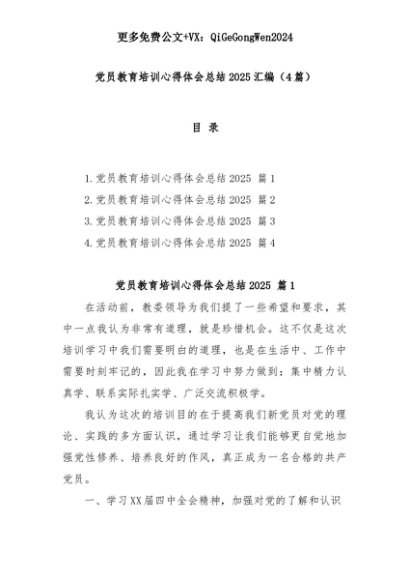 【七哥公文】2025年:(4篇)党员教育培训心得体会总结2025汇编+更多免费公文+VX:QiGeGongWen2024+更多免费公文+VX:QiGeGongWen2024