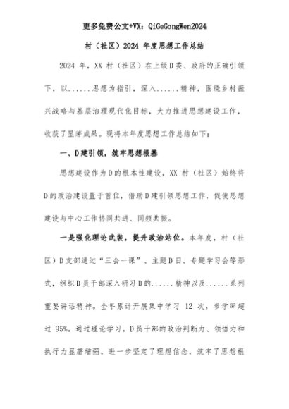 【七哥公文】2025年:202502村(社区)2024 年度思想工作总结+更多免费公文+VX:QiGeGongWen2024+更多免费公文+VX:QiGeGongWen2024