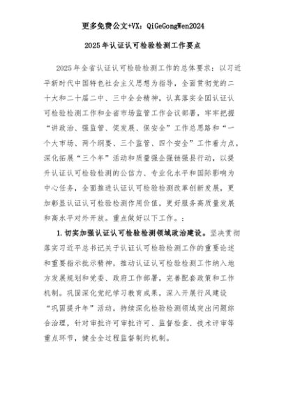【七哥公文】2025年:2025年认证认可检验检测工作要点+更多免费公文+VX:QiGeGongWen2024+更多免费公文+VX:QiGeGongWen2024