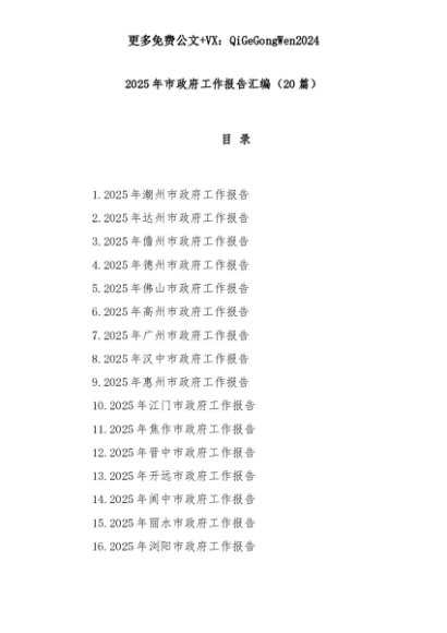 【七哥公文】2025年:(20篇)2025年市政府工作报告汇编+更多免费公文+VX:QiGeGongWen2024+更多免费公文+VX:QiGeGongWen2024