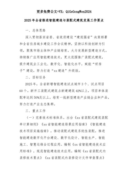 【七哥公文】2025年:2025年全省推进智能建造与装配式建筑发展工作要点+更多免费公文+VX:QiGeGongWen2024+更多免费公文+VX:QiGeGongWen2024