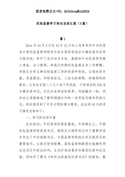 【七哥公文】2025年:(3篇)纪检监察学习培训总结汇报+更多免费公文+VX:QiGeGongWen2024+更多免费公文+VX:QiGeGongWen2024