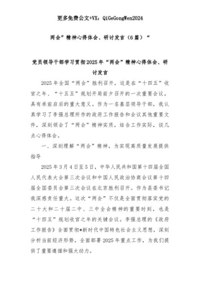 【七哥公文】2025年:(6篇)“两会”精神心得体会、研讨发言+更多免费公文+VX:QiGeGongWen2024+更多免费公文+VX:QiGeGongWen2024