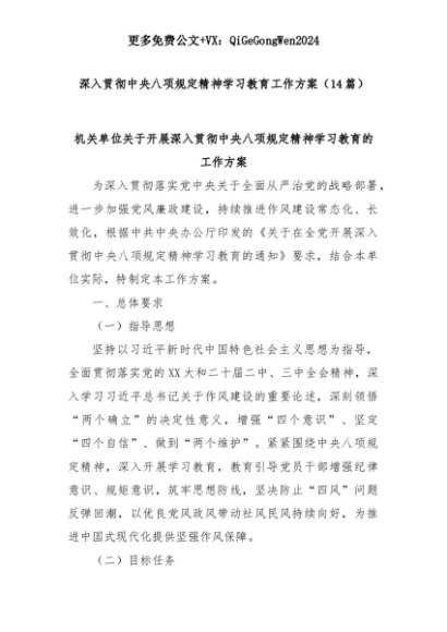 【七哥公文】2025年:(14篇)深入贯彻中央八项规定精神学习教育工作方案+更多免费公文+VX:QiGeGongWen2024+更多免费公文+VX:QiGeGongWen2024