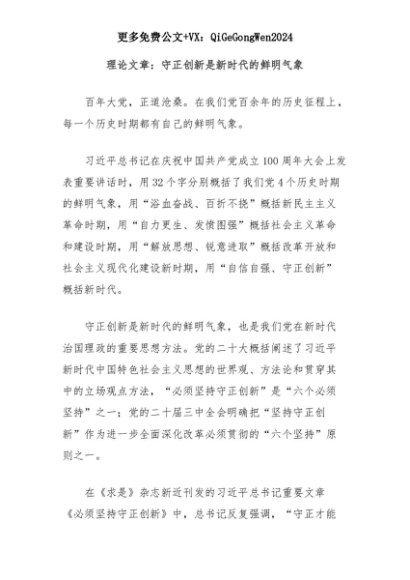 【七哥公文】2025年:理论文章:守正创新是新时代的鲜明气象+更多免费公文+VX:QiGeGongWen2024+更多免费公文+VX:QiGeGongWen2024