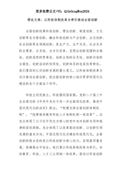 【七哥公文】2025年:理论文章:以科技体制改革为牵引推动全面创新+更多免费公文+VX:QiGeGongWen2024+更多免费公文+VX:QiGeGongWen2024