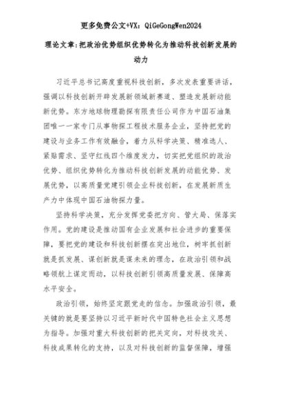 【七哥公文】2025年:理论文章把政治优势组织优势转化为推动科技创新发展的动力+更多免费公文+VX:QiGeGongWen2024+更多免费公文+VX:QiGeGongWen2024