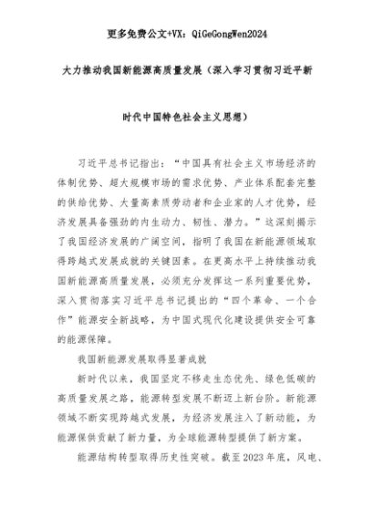 【七哥公文】2025年:大力推动我国新能源高质量发展(深入学习贯彻习近平新时代中国特色社会主义思想)+更多免费公文+VX:QiGeGongWen2024+更多免费公文+VX:QiGeGongWen2024