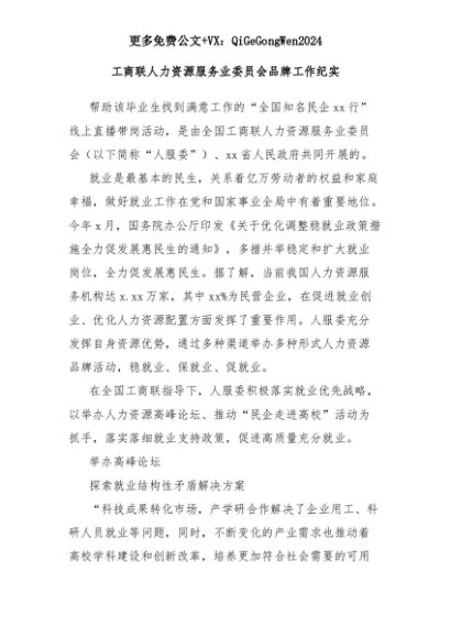 【七哥公文】2025年:工商联人力资源服务业委员会品牌工作纪实+更多免费公文+VX:QiGeGongWen2024+更多免费公文+VX:QiGeGongWen2024