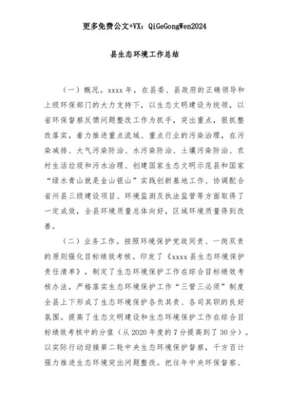 【七哥公文】2025年:县生态环境工作总结+更多免费公文+VX:QiGeGongWen2024+更多免费公文+VX:QiGeGongWen2024