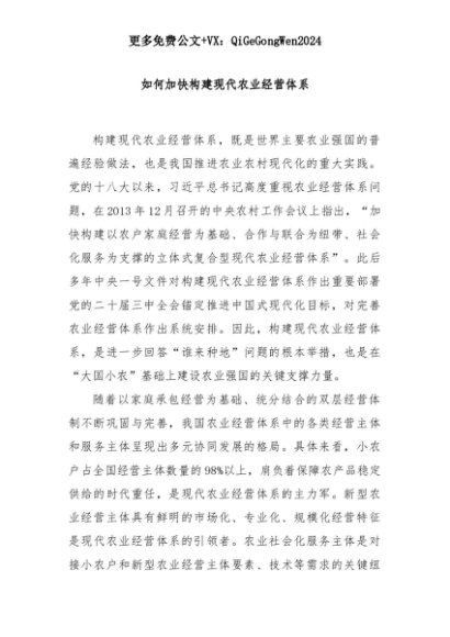 【七哥公文】2025年:如何加快构建现代农业经营体系+更多免费公文+VX:QiGeGongWen2024+更多免费公文+VX:QiGeGongWen2024