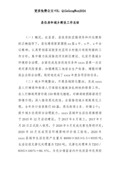 【七哥公文】2025年:县住房和城乡建设工作总结+更多免费公文+VX:QiGeGongWen2024+更多免费公文+VX:QiGeGongWen2024