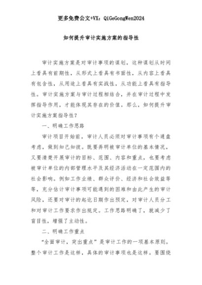 【七哥公文】2025年:如何提升审计实施方案的指导性+更多免费公文+VX:QiGeGongWen2024+更多免费公文+VX:QiGeGongWen2024