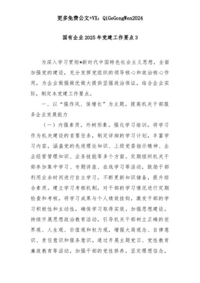 【七哥公文】2025年:国有企业2025年党建工作要点3+更多免费公文+VX:QiGeGongWen2024+更多免费公文+VX:QiGeGongWen2024
