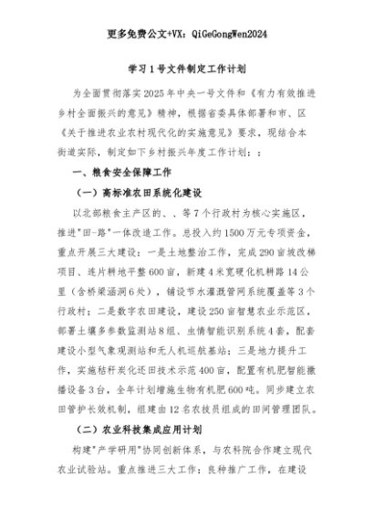 【七哥公文】2025年:学习1号文件制定工作计划+更多免费公文+VX:QiGeGongWen2024+更多免费公文+VX:QiGeGongWen2024