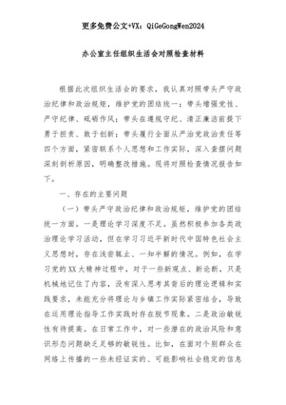 【七哥公文】2025年:办公室主任组织生活会对照检查材料+更多免费公文+VX:QiGeGongWen2024+更多免费公文+VX:QiGeGongWen2024
