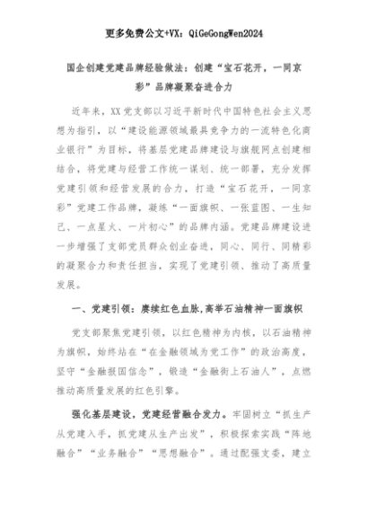 【七哥公文】2025年:国企创建党建品牌经验做法:创建“宝石花开,一同京彩”品牌凝聚奋进合力+更多免费公文+VX:QiGeGongWen2024+更多免费公文+VX:QiGeGongWen2024