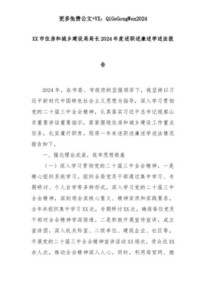【七哥公文】2025年:XX市住房和城乡建设局局长2024年度述职述廉述学述法报告+更多免费公文+VX:QiGeGongWen2024+更多免费公文+VX:QiGeGongWen2024