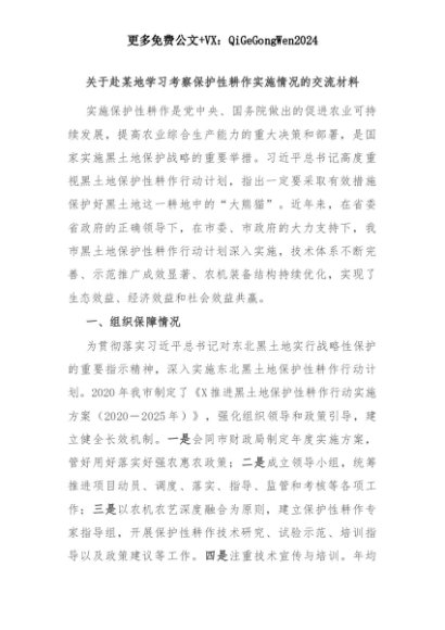 【七哥公文】2025年:关于赴某地学习考察保护性耕作实施情况的交流材料+更多免费公文+VX:QiGeGongWen2024+更多免费公文+VX:QiGeGongWen2024