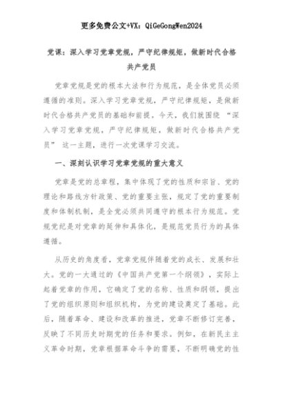 【七哥公文】2025年:党课:深入学习党章党规,严守纪律规矩,做新时代合格共产党员+更多免费公文+VX:QiGeGongWen2024+更多免费公文+VX:QiGeGongWen2024
