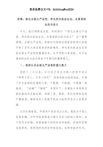 【七哥公文】2025年:党课:深化全面从严治党,净化党内政治生态,永葆党的生机与活力+更多免费公文+VX:QiGeGongWen2024+更多免费公文+VX:QiGeGongWen2024