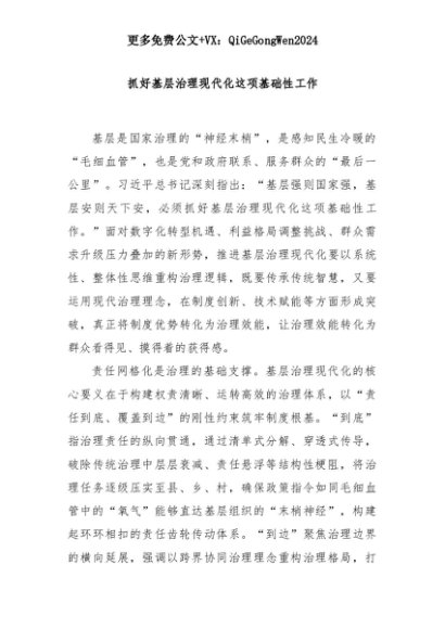 【七哥公文】2025年:抓好基层治理现代化这项基础性工作+更多免费公文+VX:QiGeGongWen2024+更多免费公文+VX:QiGeGongWen2024