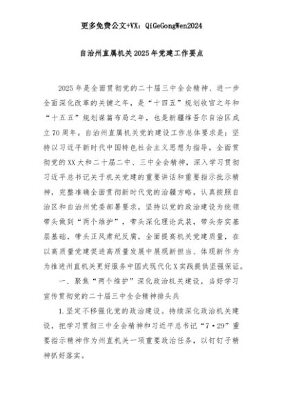 【七哥公文】2025年:自治州直属机关2025年党建工作要点+更多免费公文+VX:QiGeGongWen2024+更多免费公文+VX:QiGeGongWen2024
