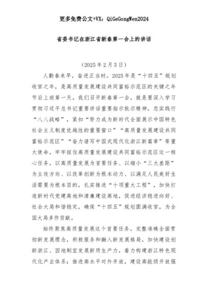 【七哥公文】2025年:省委书记在浙江省新春第一会上的讲话+更多免费公文+VX:QiGeGongWen2024+更多免费公文+VX:QiGeGongWen2024