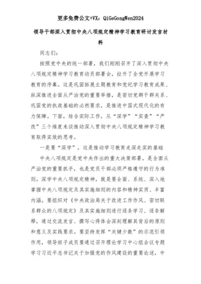 【七哥公文】2025年:领导干部深入贯彻中央八项规定精神学习教育研讨发言材料+更多免费公文+VX:QiGeGongWen2024+更多免费公文+VX:QiGeGongWen2024