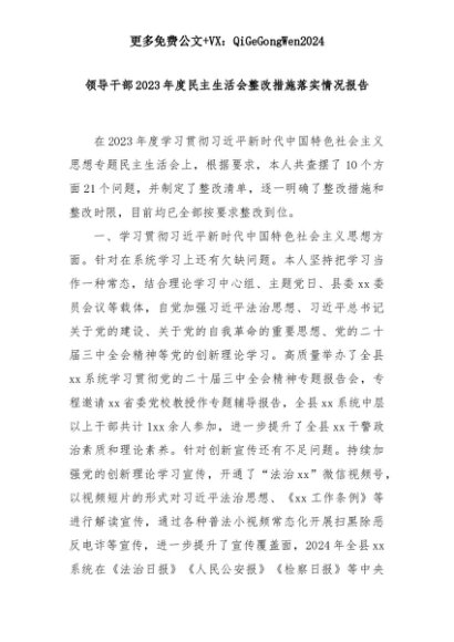 【七哥公文】2025年:领导干部2023年度民主生活会整改措施落实情况报告+更多免费公文+VX:QiGeGongWen2024+更多免费公文+VX:QiGeGongWen2024