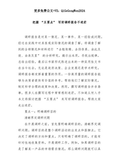 【七哥公文】2025年:把握 “五要点” 写好调研报告不迷茫+更多免费公文+VX:QiGeGongWen2024+更多免费公文+VX:QiGeGongWen2024
