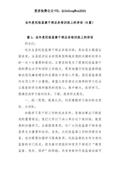 【七哥公文】2025年:(8篇)在年度纪检监察干部业务培训班上的讲话+更多免费公文+VX:QiGeGongWen2024+更多免费公文+VX:QiGeGongWen2024