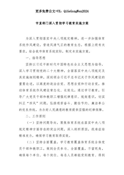 【七哥公文】2025年:市直部门深入贯彻学习教育实施方案+更多免费公文+VX:QiGeGongWen2024+更多免费公文+VX:QiGeGongWen2024