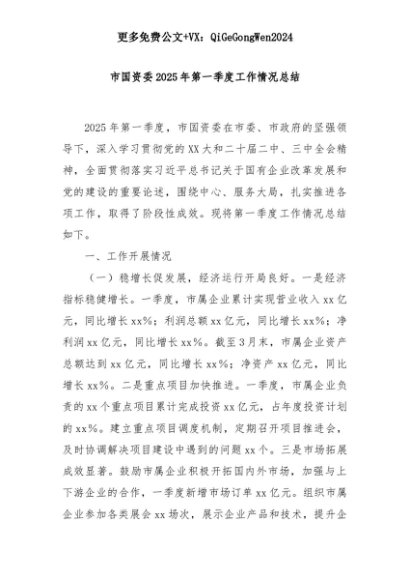 【七哥公文】2025年:市国资委2025年第一季度工作情况总结+更多免费公文+VX:QiGeGongWen2024+更多免费公文+VX:QiGeGongWen2024