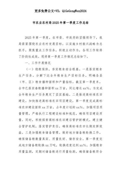 【七哥公文】2025年:市农业农村局2025年第一季度工作总结+更多免费公文+VX:QiGeGongWen2024+更多免费公文+VX:QiGeGongWen2024