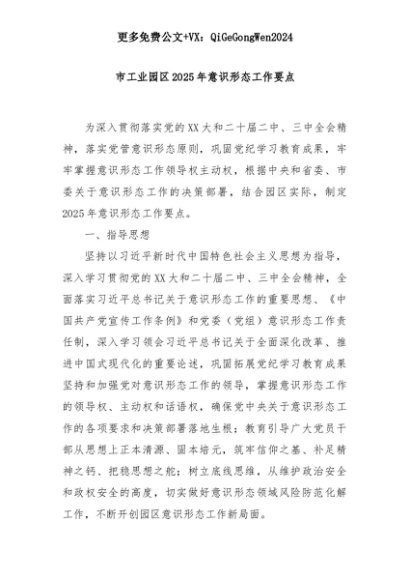 【七哥公文】2025年:市工业园区2025年意识形态工作要点+更多免费公文+VX:QiGeGongWen2024+更多免费公文+VX:QiGeGongWen2024