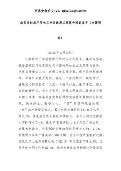 【七哥公文】2025年:山西省财政厅厅长在审议政府工作报告时的发言(全国两会)+更多免费公文+VX:QiGeGongWen2024+更多免费公文+VX:QiGeGongWen2024
